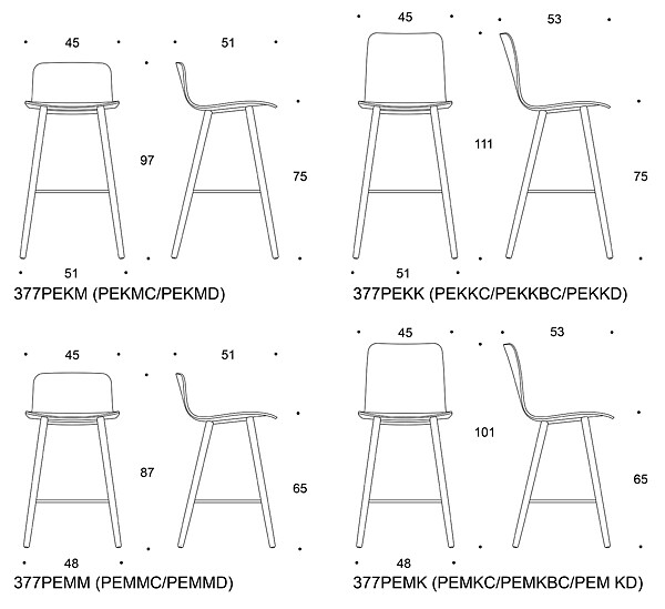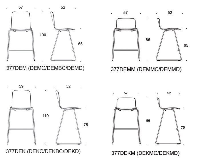 Stapelbara barstolen Sola finns i två olika sitt- och ryggstödshöjder. Den höga barstolen passar utmärkt i kombination med ståbord och kan fås oklädd samt med olika klädsel- och materialalternativ. Den klädda sitsen kan även fås med den mjukare klädseln soft.